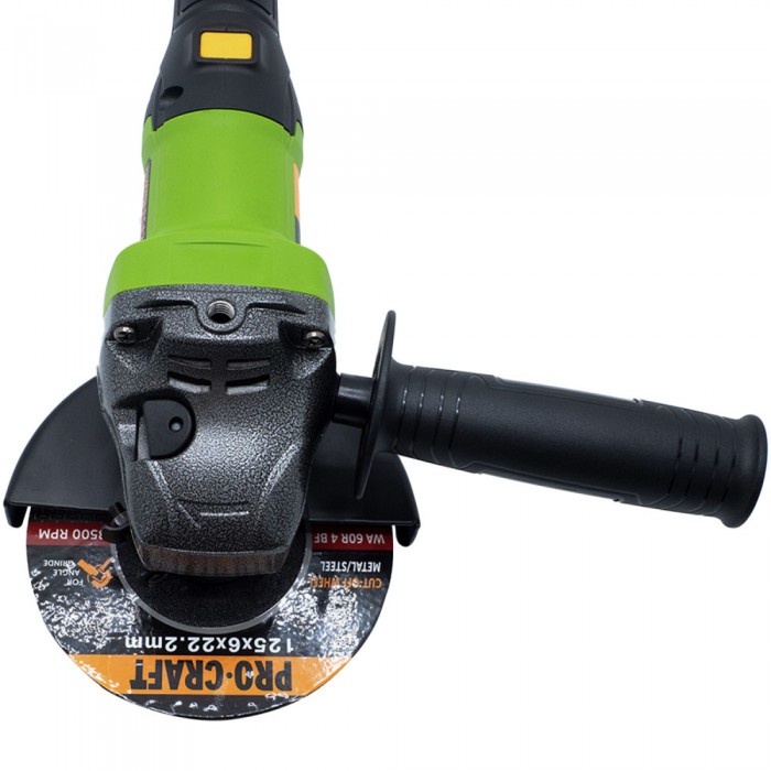 Аккумуляторная болгарка Procraft PGA20, купить которую вы можете на нашем сайте всего в несколько кликов, имеет специальный отрезной диск, диаметр которого составляет 125 мм. Также она имеет безщеточный электрический двигатель, более надежный и производительный, чем обычные электромоторы коллекторного типа. Стоит также отметить, что максимальная скорость оборотов, которые выдает двигатель, составляет 7500 в минуту. Скорость можно регулировать с помощью специального переключателя, расположенного на корпусе устройства.