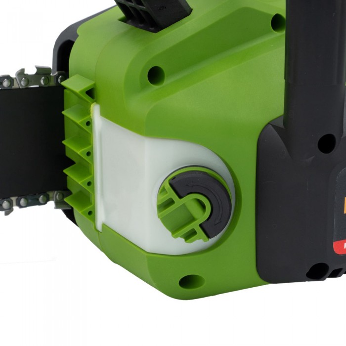 - Автоматическая смазка цепи. Инструмент оснащен системой автоматической смазки цепи, что повышает ее долговечность и упрощает обслуживание.