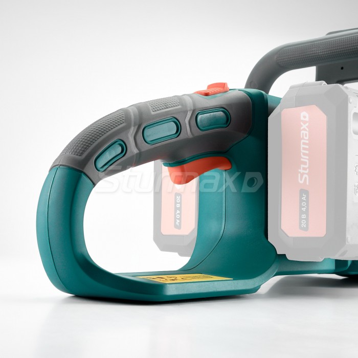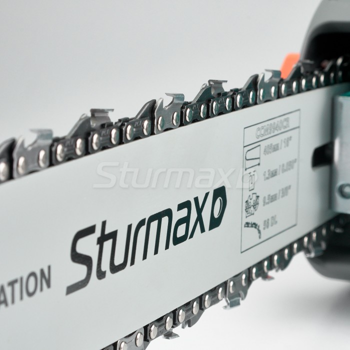 Sturmax CCM9940CR Brushless – современная и производительная универсальная 40В аккумуляторная цепная пила линейки инструмента под единственный аккумулятор Sturmax Cordless Range. Питание инструмента осуществляется одновременно от двух 20В аккумуляторов, которые, кроме этой модели, можно использовать и для других инструментов 20В линейки Sturmax под единую аккумуляторную платформу. Пила имеет отличную эргономику, а благодаря компактным габаритам и небольшой массе, маневренная и легкая в использовании, в том числе при работах в условиях ограниченного пространства. Корпус сделан из качественного ударопрочного пластика и надежно защищает инструмент от возможных механических повреждений во время эксплуатации, а прорезиненная рукоять обеспечивает лучший контроль в процессе использования. Одна из важнейших конструктивных особенностей Sturmax CCM9940CR – мощный электромотор без щеток – за счет него увеличивается устойчивость к перегрузкам и производительность работы на одном заряде АКБ. Кроме того, такой мотор не подвержен перегреву и позволяет дольше работать без перерыва. Изготовленные из высоколегированной стали шестерни редуктора Hardened Gears демонстрируют высокую стойкость к нагрузкам, минимизируя риск преждевременного выхода из строя инструмента. Предусмотрена функция плавного пуска Soft Start, исключающая стартовый рывок. Наличие SDS-системы безключевого натяжения цепи обеспечивает удобство при использовании, а встроенный индикатор заряда батареи Power Check позволяет визуально контролировать уровень заряда аккумулятора. За безопасность в процессе работы отвечают тормоз цепи Smart Brake, гарантирующий мгновенную остановку цепи, а также защиту от случайного включения.