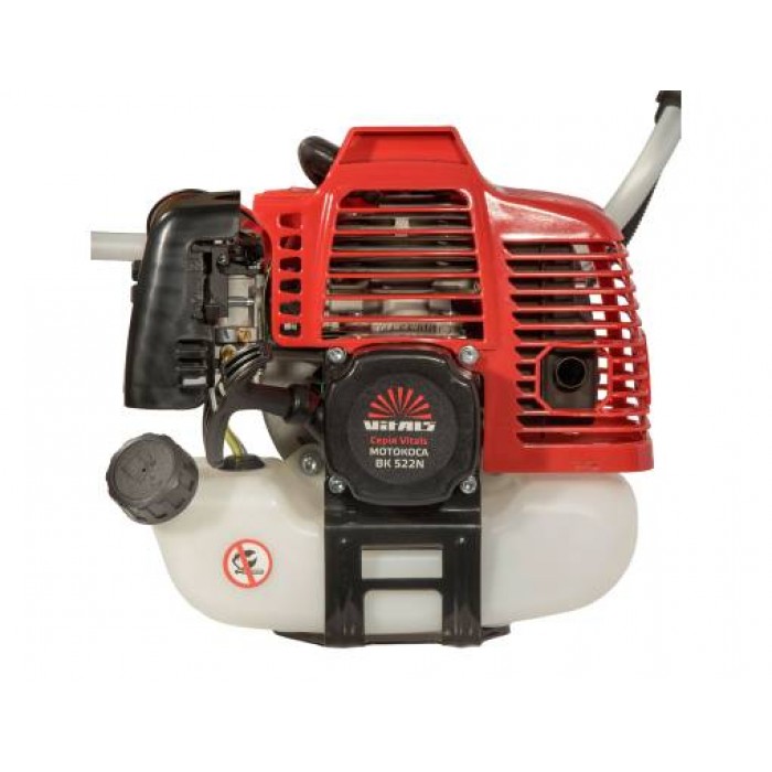 Мотокоса Vitals BK 522n оснащена надійним двотактним двигуном із повітряною системою охолодження, робочий об'єм якого становить 52,0 см³, а потужність – 2,0 л.с. (1,5 кВт). Силовий агрегат виготовлений із добірних та зносостійких матеріалів. Нанесення хромованого шару на внутрішні стінки циліндра зменшує силу тертя в циліндро-поршневому вузлі, що позитивно впливає на довговічність механізму і подовжує його безвідмовну роботу.